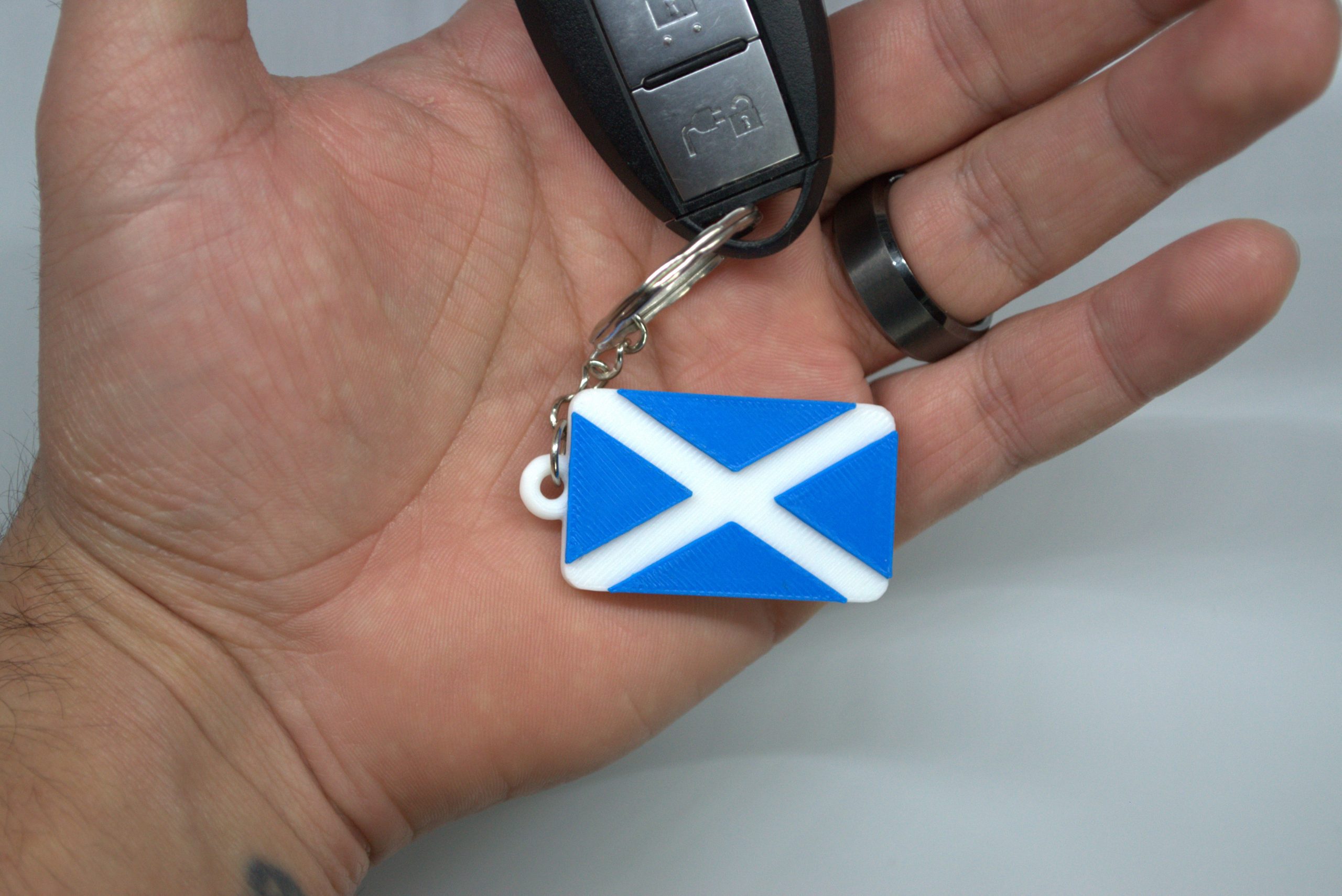 Scotland Flag Keychain White and Blue.